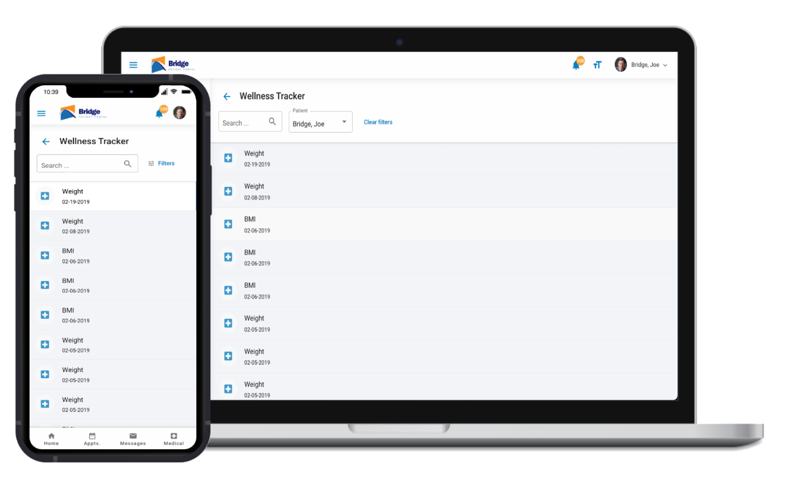 Bridge’s Wellness Tracker feature allows patients to manually and automatically record important vitals, such as blood pressure, blood glucose, weight and more. These vitals can be shared, even populating discrete data fields, within your EHR.